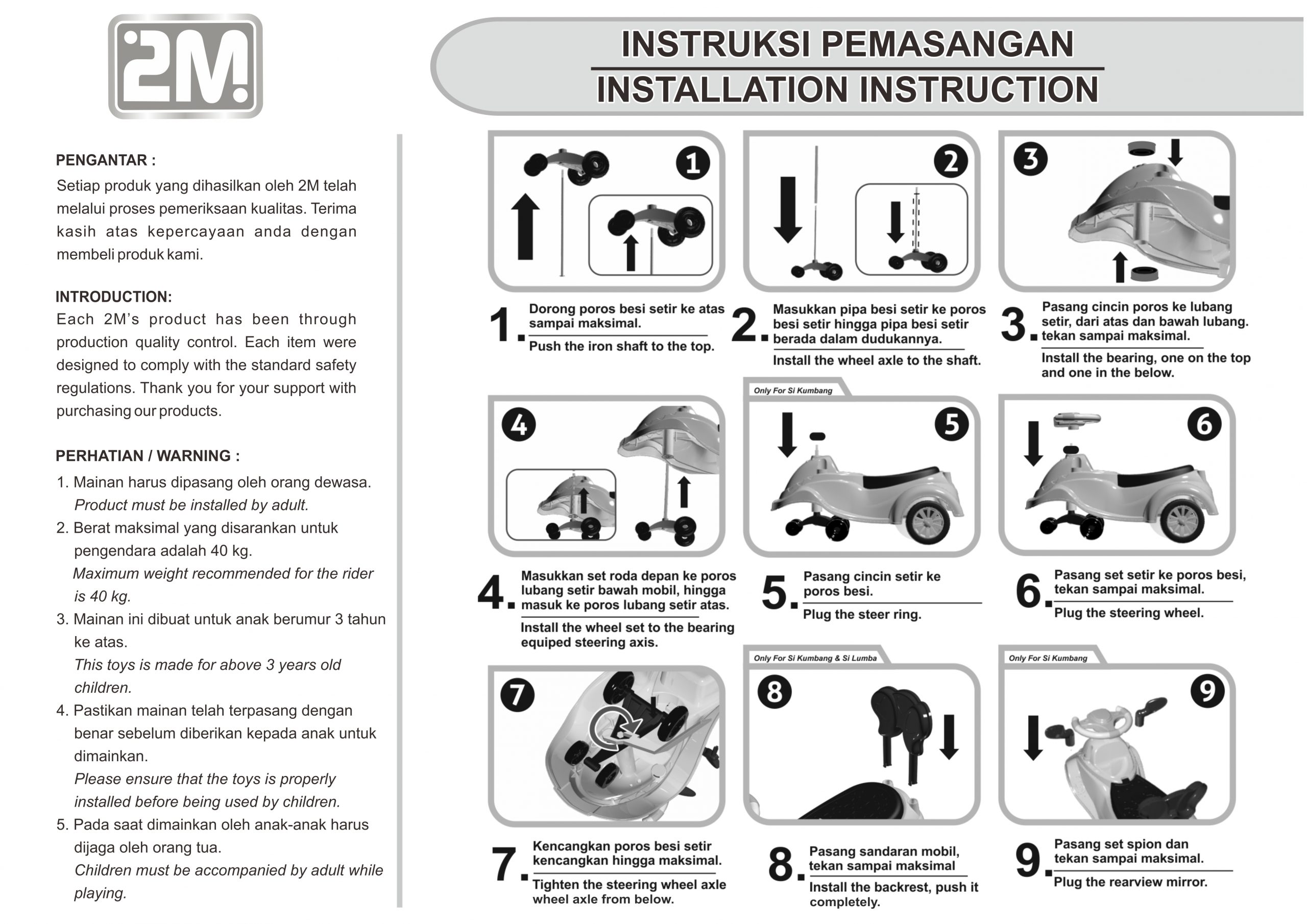 Si Lumba is a toy ride that can be moved by the child’s feet. Train leg muscle strength and improve children’s motoric activity. There is a round steering wheel as a handle for children when playing and a backrest to support the child’s body so it doesn’t fall.